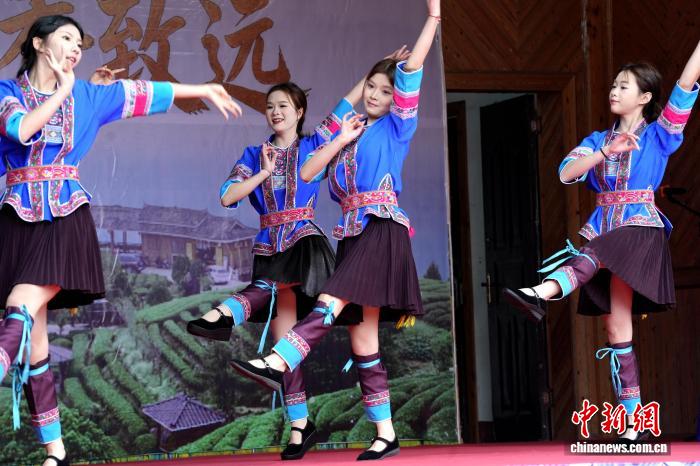 图为侗族密斯正在茶园舞蹈。吴练勋 摄