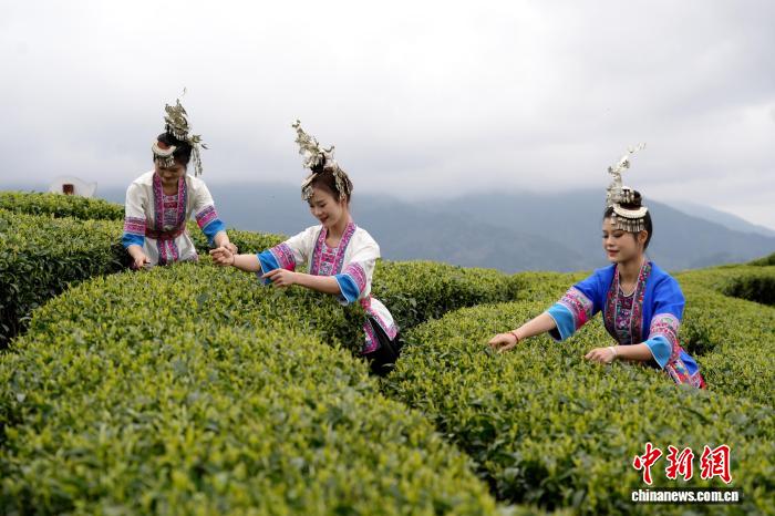 图为侗族小姐采戴秋茶。吴练勋 摄